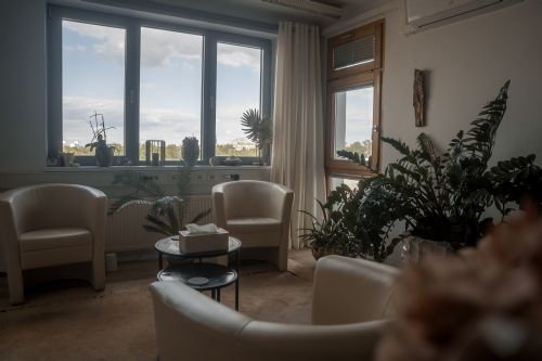 Im Warteraum kann sich selbstständig Wasser und Tee genommen werden