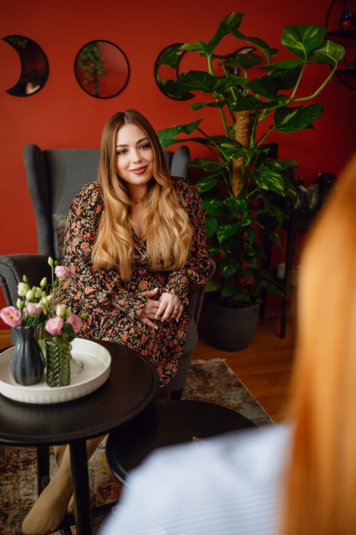 Psychotherapeutin erklärt Patientin Zusammenhänge