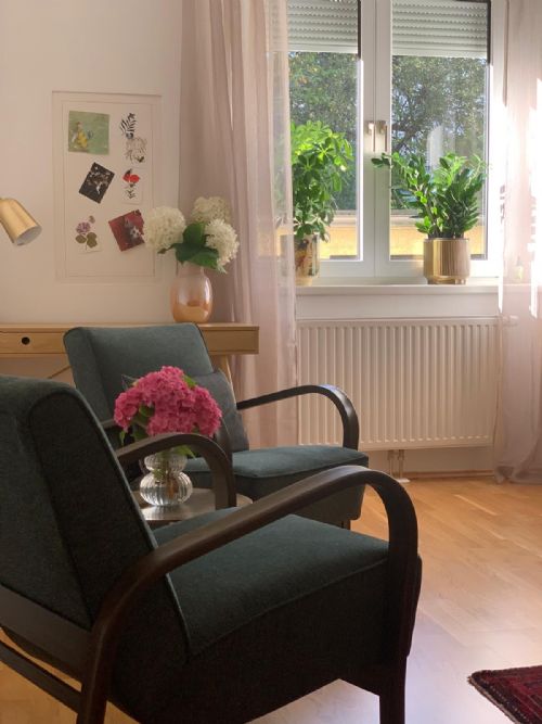Der Raum ist hell und freundlich mit Blick auf den schönen Garten