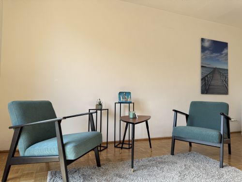 Ruhiger und geschützter Raum für Psycholog. Beratung, Coaching, Supervision, Einzel-, Paar-, Familientherapie und Aufstellungsarbeit. Großzügiger Warteraum mit Teeküche und Sanitärbereich. 250m zur U2 Taborstraße, Kurzparkzone, Garage in der Nähe.