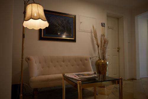 Couch und Sessel im Therapieraum. Hier findet der gemeinschaftliche Teil der Arbeit von Psychotherapeutin in Ausbildung unter Supervision Verica Mitrovic mit ihren Patient*innen statt.