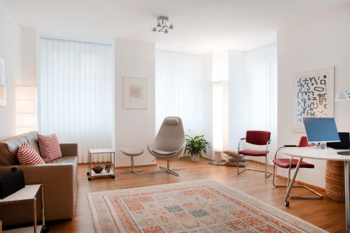Ruhiger und geschützter Raum für Psycholog. Beratung, Coaching, Supervision, Einzel-, Paar-, Familientherapie und Aufstellungsarbeit. Großzügiger Warteraum mit Teeküche und Sanitärbereich. 250m zur U2 Taborstraße, Kurzparkzone, Garage in der Nähe.